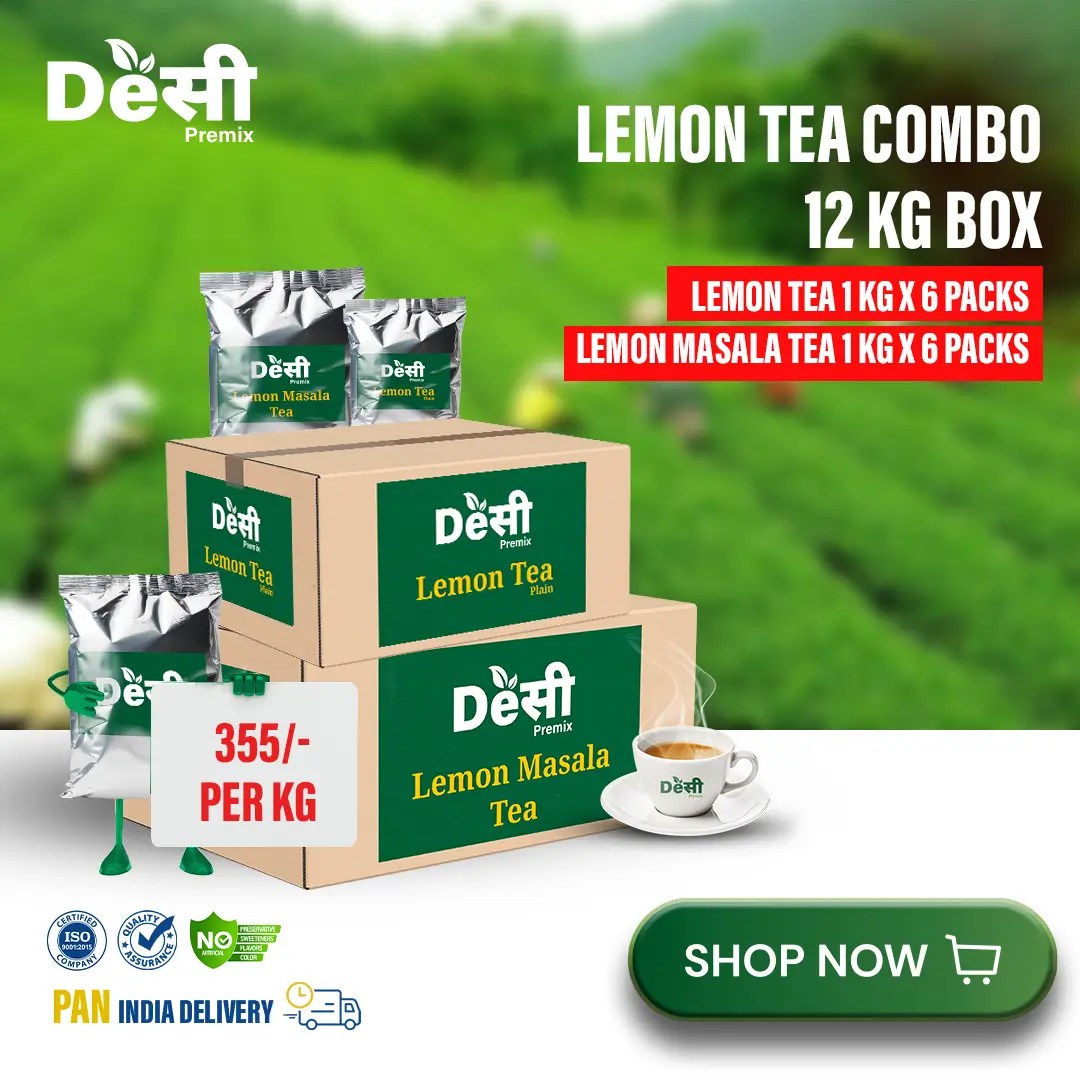 DesiPremix is committed to delivering premium instant tea premixes for businesses across India. With the Lemon Tea Combo Bulk Box, you can offer two customer favorites in one pack, ensuring everyone finds a flavor they love.